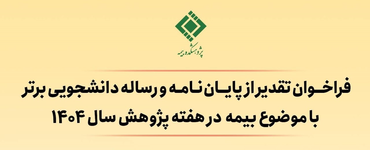 پژوهشکده بیمه با هدف ارتقای پژوهش‌های دانشجویی و توسعه ادبیات تخصصی در حوزه «بیمه»، فراخوانی برای تقدیر از پایان‌نامه‌ها و رساله‌های برتر سال 1404 منتشر کرد.